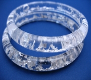 People sometimes ask me what differentiates my work from Alexis Bittar's or from Louis Vuitton's Inclusions™ series. Briefly, I believe Alexis Bittar's carved Lucite jewelry is just that: carved from solid pieces of Lucite, then gilded with paint. The process that I use involves casting from liquid resin using a custom mold which gives me the opportunity to embed precious and semi-precious materials. Louis Vuitton's Inclusions are also cast from resin. However, he prefers brass and glass inclusions (embeddings) rather than precious ones. Their work is an inspiration to me. |